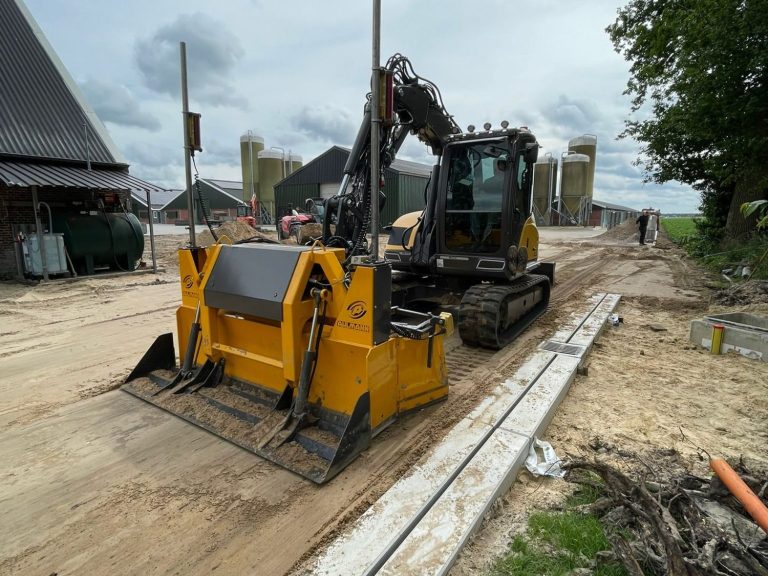 Het profileren van zand is een belangrijk onderdeel voorafgaand aan het aanleggen van bestrating. Het staat daarom ook wel bekend als het egaliseren. Profileren is nodig als voorbereiding voor een bestrating of als ondergrond voor een laag beton, maar ook een zandbed voor een project in sierbestrating of als ondergrond voor gras moet natuurlijk vlak zijn. Dit doen wij met een lasergestuurde levelbak. De levelbak is een volautomatisch afrijsysteem voor die aan onze eigen Mecalac kraan zit. Deze wordt ingezet voor het onder grote nauwkeurigheid profileren van banen voor stelconplaten, straatwerk, onderbaan voor betonvloeren of puinverharding onder wegen.