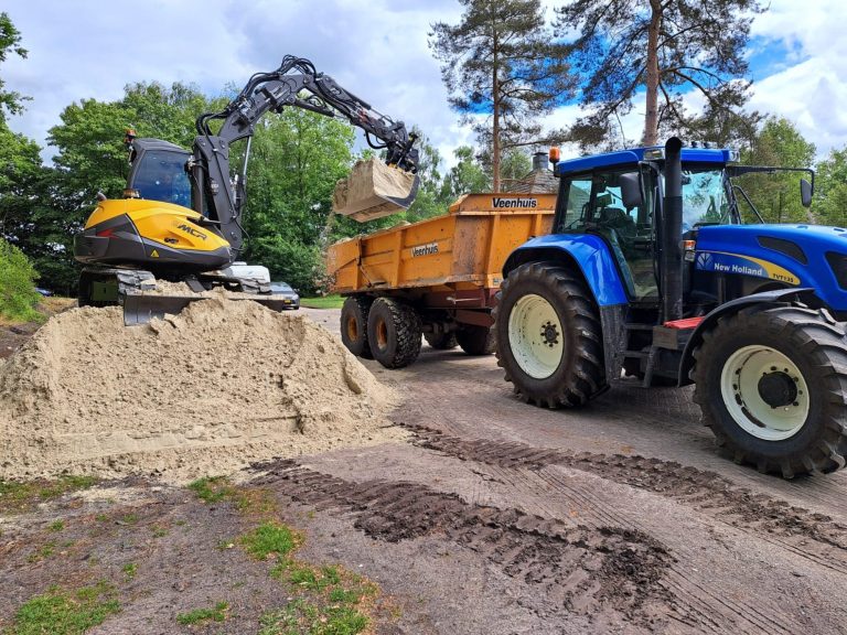 Een kwalitatief hoog eindresultaat van een erf, inrit of parkeerplaats is uiteraard niet alleen afhankelijk van de aangelegde bestrating. De onderlaag is minstens zo belangrijk. Het is mogelijk om dit aan te brengen met puin of een zandbed. Daarbij egaliseren en fijnprofileren we de zandlaag en zorgen we voor de juiste afwatering.